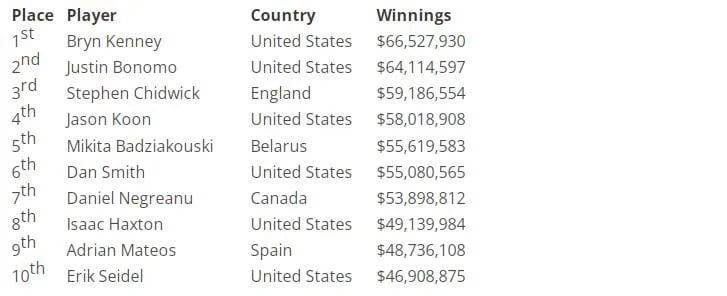 自从Bryn Kenney在2019年伦敦举行的Triton百万慈善赛上赢得扑克界最大的一笔奖金20,563,324美元后,他就在历史奖金榜上遥遥领先。从那时起,他与Justin Bonomo的对决就成了扑克锦标赛冠军之巅的主流话题。Bonomo和Kenney多年来一直占据着主导地位,但近年来,两人的距离越来越近,每一次备受瞩目的胜利都会让他们距离神奇的7000万美元大关更近一些。