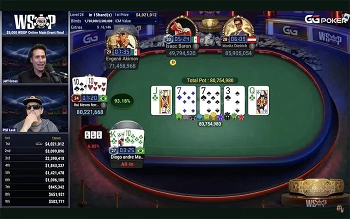 最终,奥地利选手Moritz Dietrich的名字被载入GGPoker、甚至线上扑克的青史中,他是有史以来最大规模线上扑克锦标赛的最大赢家,奖励高达4,021,012刀。