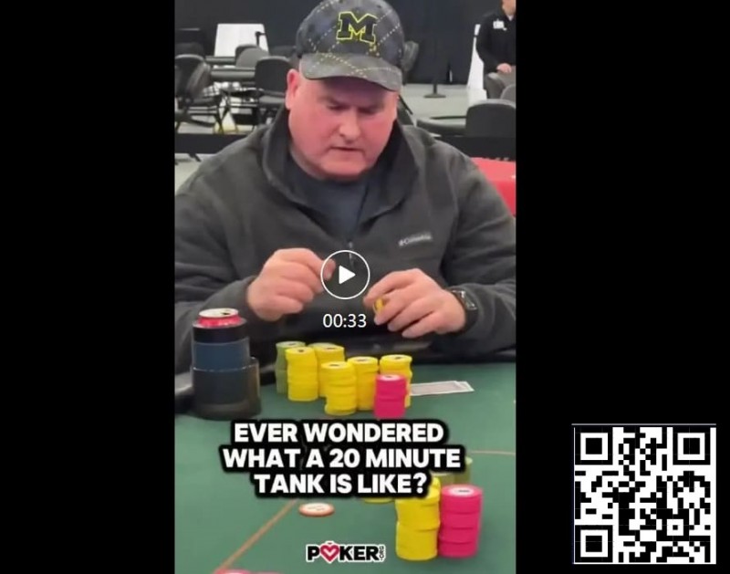 而在锦标赛之外的扑克直播节目中,甚至还出现过长考超过20分钟的。这事发生在2024年3月The Lodge Card Club的某次直播中,到底是怎样的冤家牌让Nik Airball纠结了那么久呢?可以戳左边链接或点开下面的视频看看。