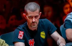 然而好运并未常伴,26级别时,曹一凡手握K♥T♠与对手J♣T♦跑马失败,被狠狠要了一口,对方实现db。
