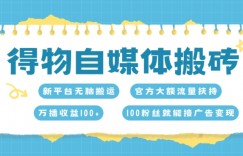 得物自媒体搬砖,万播收益100+,官方大额流量扶持,100粉丝就能接广告变现