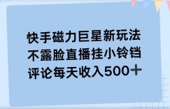 快手磁力聚星新玩法,不露脸直播挂载小铃铛,平均每天收入500+2024快手磁力巨星新玩法,