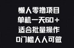 懒人零撸项目,单机一天60+适合批量操作,0门槛人人可做