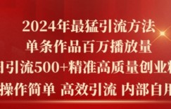 2024年最猛暴力引流方法,单条作品百万播放 单日引流500+高质量精准创业粉
