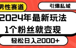 2024年最新男性赛道玩法,引爆私域流量,1个粉丝就变现,轻松日入2000+